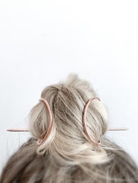 -This is a decorative piece, and for most wearers it will not hold the hair in place on its own. Please secure your bun as usual (I am using two cork screw bobby pins to hold this one in place). Place the Bun Cage over the bun, then thread the pin under whatever is holding the bun in place (elastic, bobby pins, etc.). This will secure the bun cage.